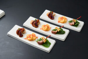 ・Luxury Trio Platter: Steamed Soft Octopus with Fried Taro / Dashi-Infused Egg Roll with Sakura Shrimp / Grilled Duck and Long Green Onion Pinchos - INCLUDED ACCESSORIES